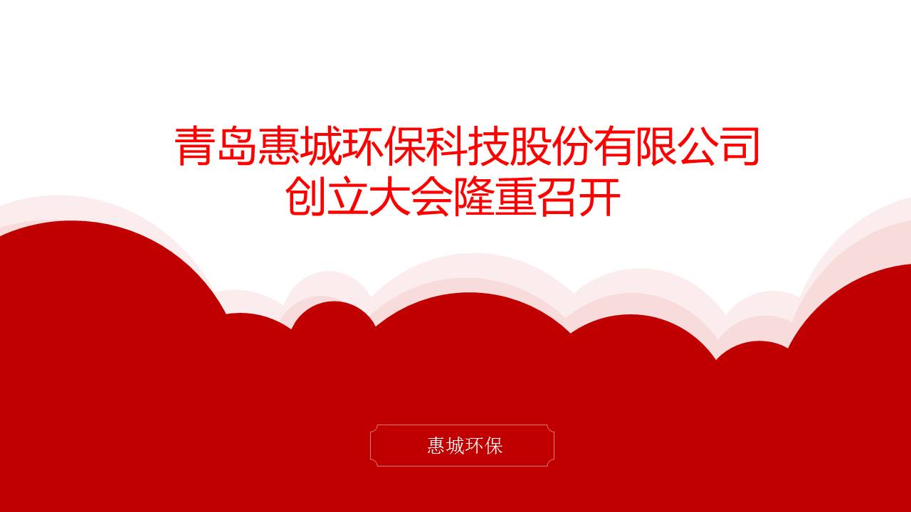 2015年9月19日下午,在公司會(huì)議室成功召開(kāi)了青島惠城環(huán)保科技股份有限公司創(chuàng)立大會(huì)暨第一屆股東大會(huì),大會(huì)通過(guò)了股份公司改制方案,選舉產(chǎn)生了股份公司第一屆董事會(huì)、監(jiān)事會(huì)成員,完善了公司法人治理結(jié)構(gòu),為實(shí)現(xiàn)戰(zhàn)略轉(zhuǎn)型奠定了良好基礎(chǔ)。[ 查看更多 ]