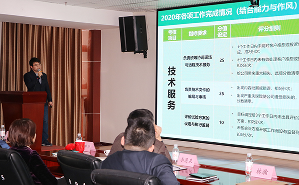 會上,公司35位中高層經(jīng)營管理干部對自己一年來的履職情況和重點工作做了系統(tǒng)總結(jié),對工作中存在的問題和不足展開了深刻剖析,并對2021年度工作思路和重點工作科學規(guī)劃。臺下人員認真聆聽,并依據(jù)考核方案,對述職干部客觀公正地打分評價。