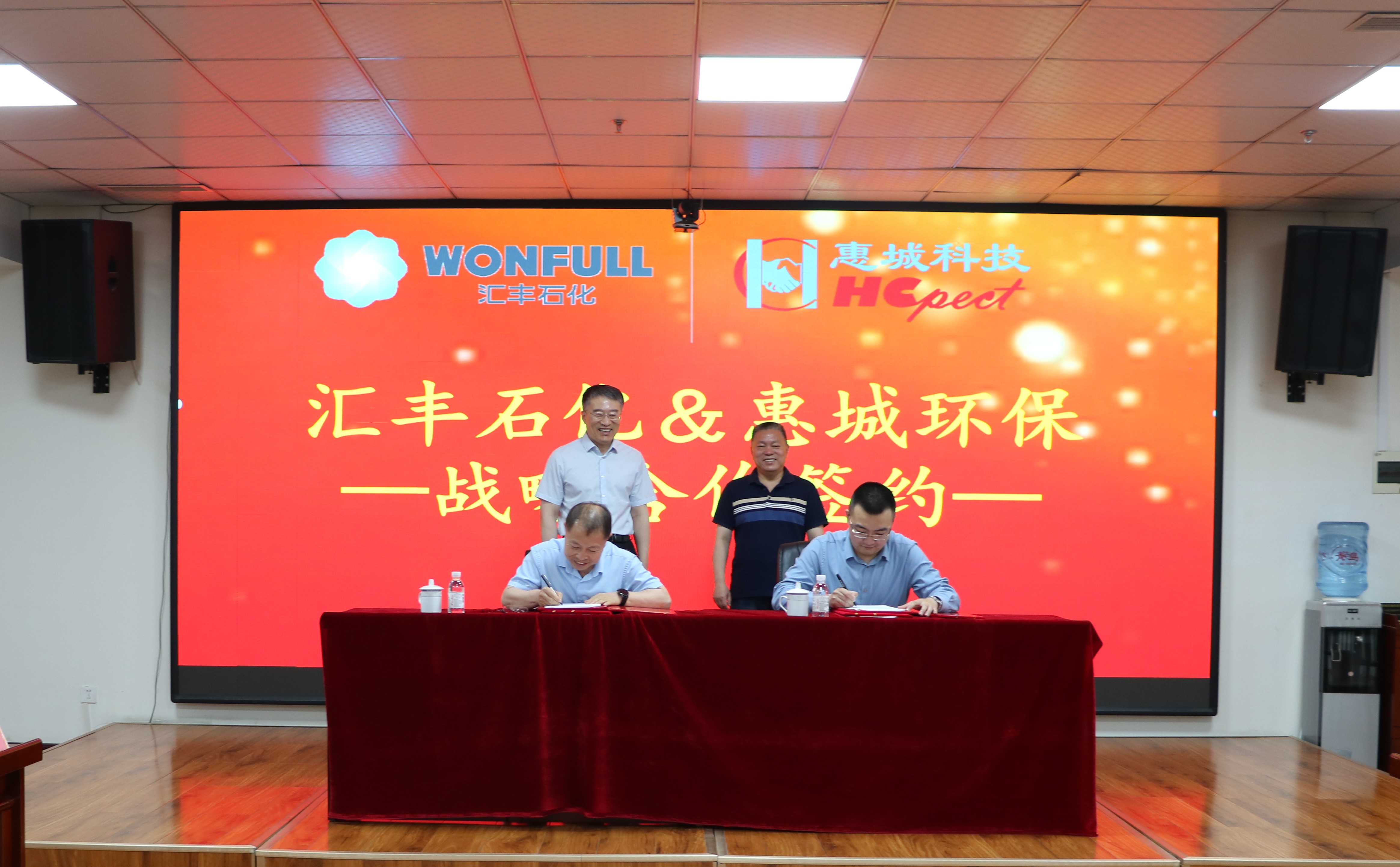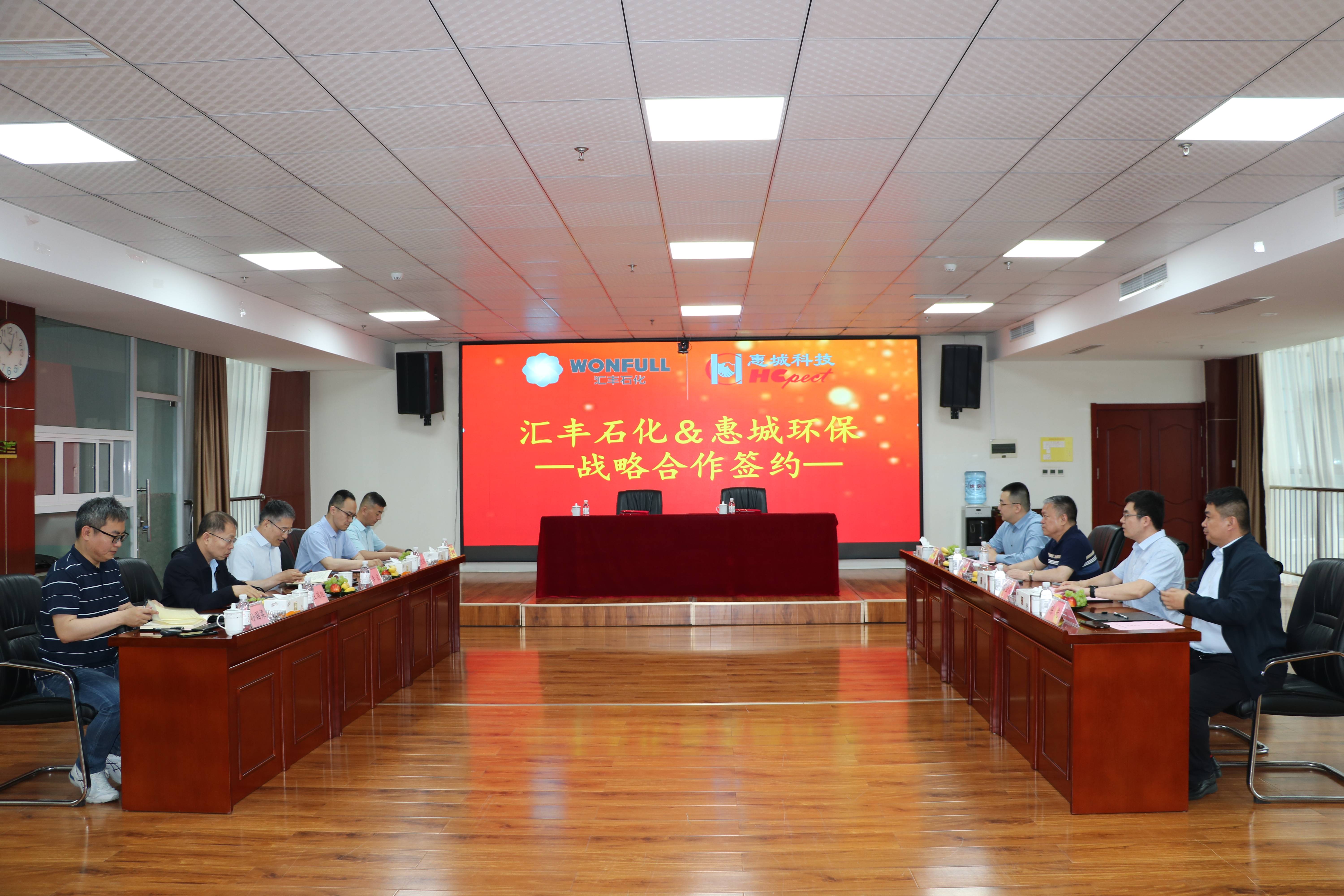 為進(jìn)一步推動綠色循環(huán)經(jīng)濟(jì)高質(zhì)量可持續(xù)發(fā)展,加快先進(jìn)環(huán)保技術(shù)成果轉(zhuǎn)化落地,5月18日,青島惠城環(huán)保科技集團(tuán)股份有限公司(以下簡稱“惠城環(huán)保”)與山東匯豐石化集團(tuán)有限公司(以下簡稱“匯豐石化”)戰(zhàn)略合作簽約儀式在惠城環(huán)保研發(fā)大樓418會議室隆重舉行。匯豐石化總裁李波、總工程師王瑞旭,惠城環(huán)保創(chuàng)始人張新功、總經(jīng)理林瀚等出席簽約儀式。