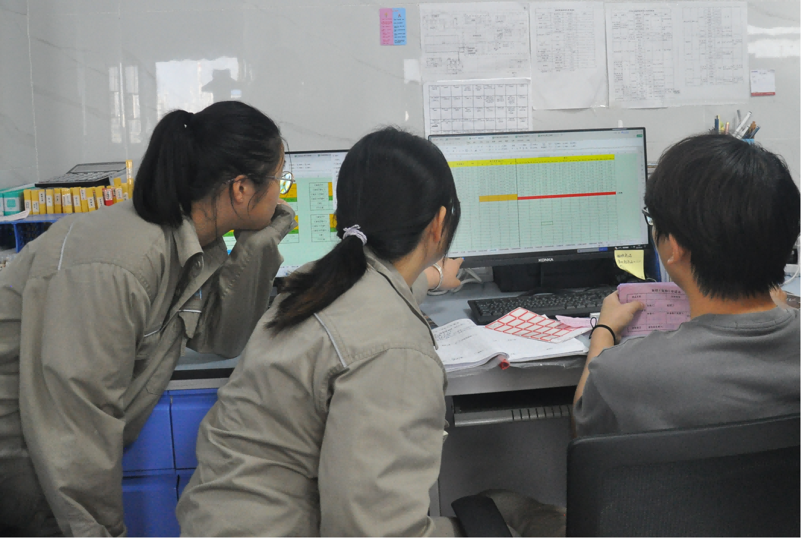 巾幗不讓須眉,生產(chǎn)部的女孩子們也積極投入到培訓(xùn)學(xué)習(xí)當(dāng)中。除了要到現(xiàn)場(chǎng)學(xué)習(xí),她們還需要在中控室及時(shí)監(jiān)控和調(diào)整參數(shù),迅速發(fā)現(xiàn)和處理特殊情況,及時(shí)與現(xiàn)場(chǎng)操作人員聯(lián)系。